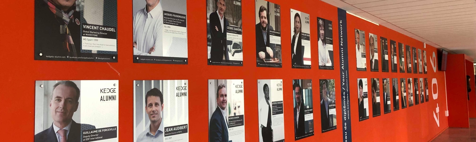 The development of the alumni network, which brings together more than 60,000 alumni today, is one of the most important components of KEDGE Business School's strategy. More than just former students, KEDGE Alumni are real inspirational models for Kedgers that have just arrived on campus. In order to raise awareness among our current students about the backgrounds of our alumni, and to complement the numerous portraits we publish all year long on our website, we have designed a poster campaign dedicated to our alumni network.