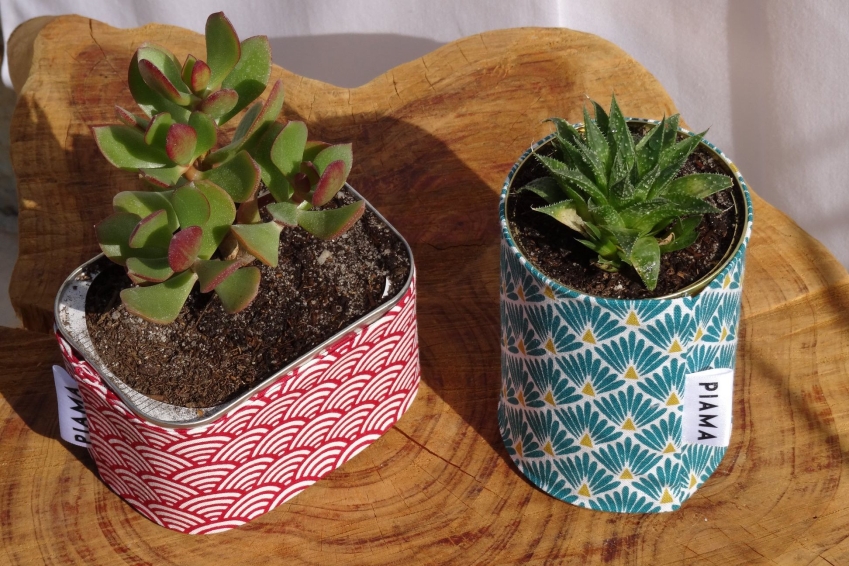 - The tinned can - covered in pretty removable and interchangeable fabric, containing easy-to-care for succulents or cactuses;