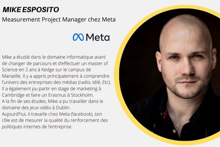 👉On se retrouve comme chaque semaine pour vous présenter un Alumni ! Cette semaine, nous vous présentons Mike ESPOSITO travaillant pour la société Meta en tant que Measurement Project Manager 🧑🏻‍💻